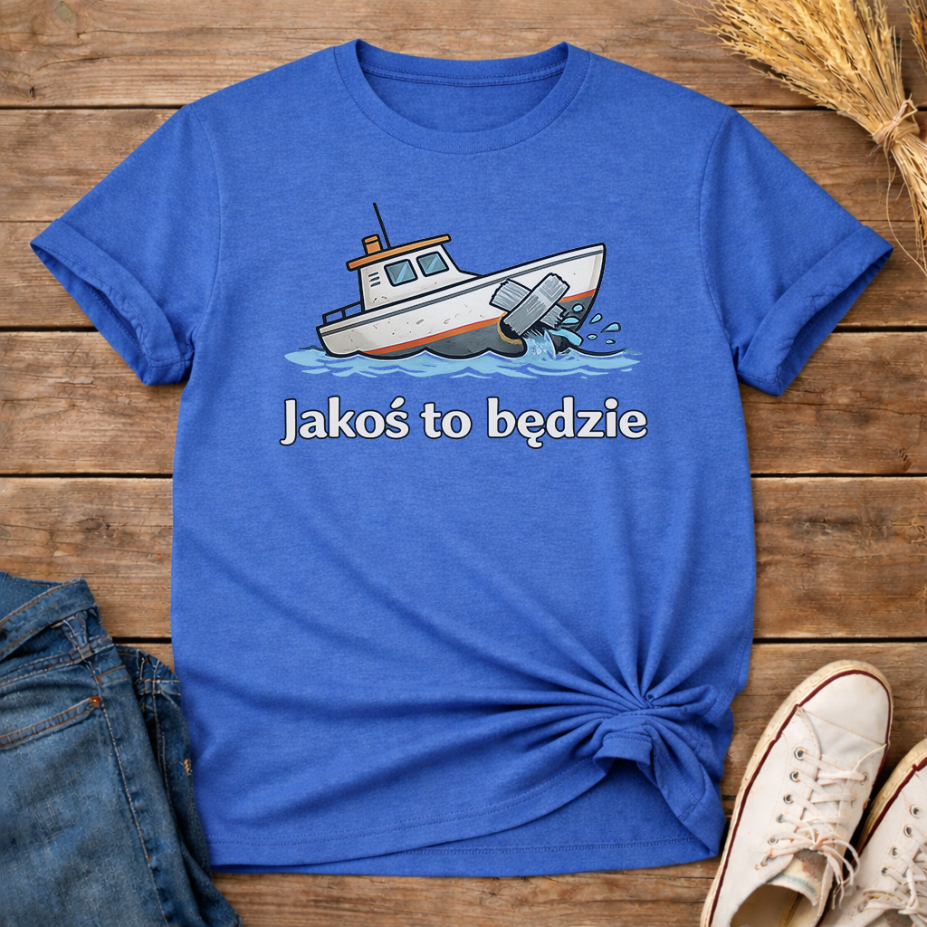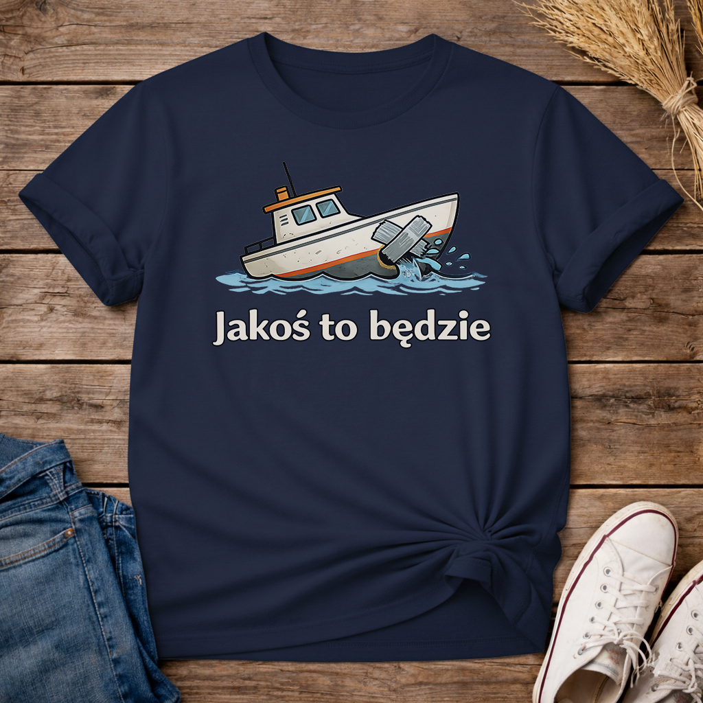 A boat held together by hope, duct tape, and pure confidence that somehow it will work out. This design captures a very Polish approach to problems, calm acceptance, zero panic, and moving forward anyway. Things might look rough, but stopping isn’t an option.