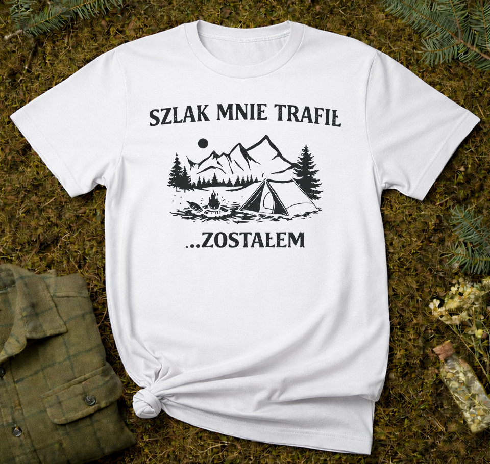 A sharp Polish wordplay every hiker understands, when the trail hits hard, but you stay anyway. This design captures that moment of frustration turning into quiet acceptance somewhere between the tent and the fire. Inspired by mountain nights, stubborn decisions, and trails that don’t forgive.