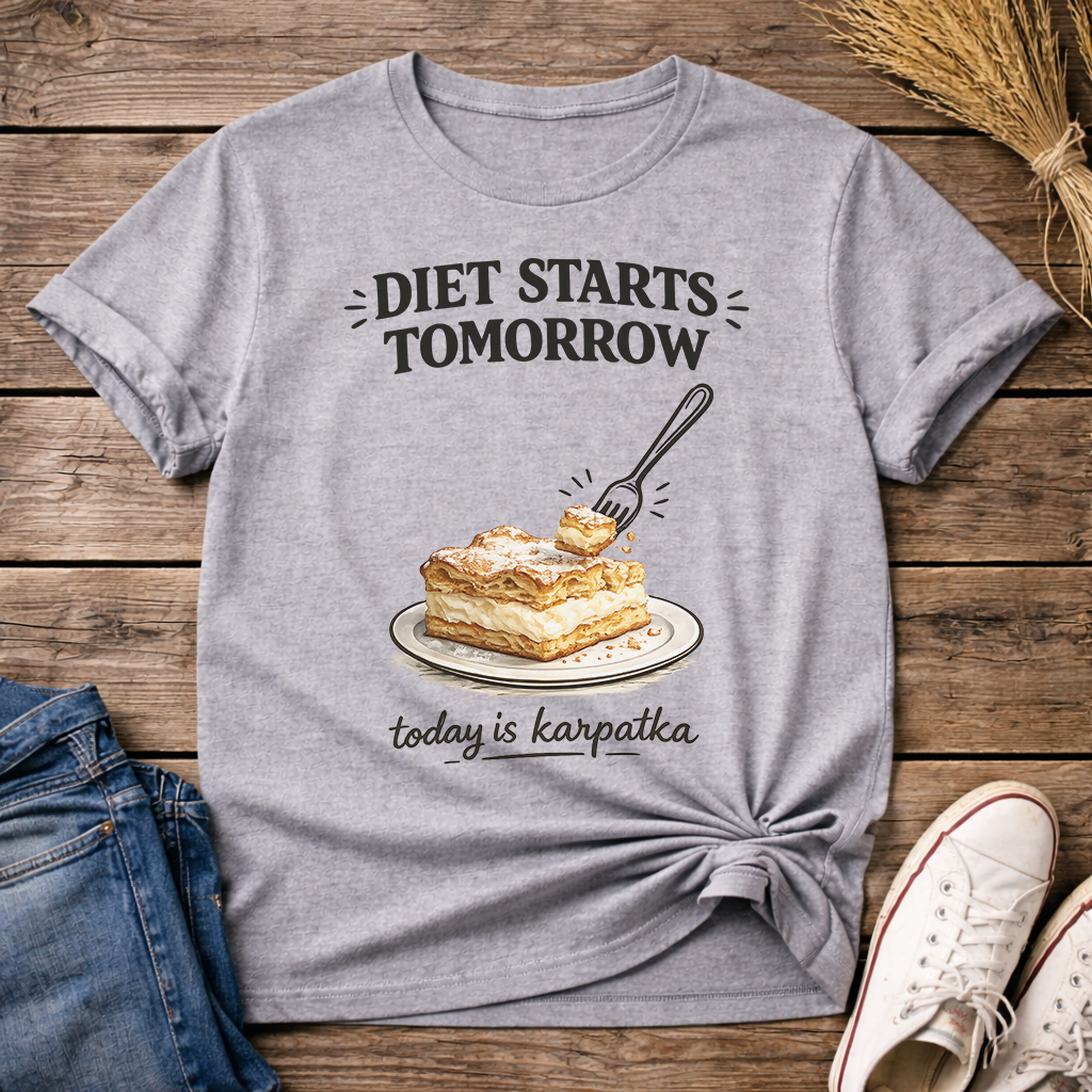 Today belongs to karpatka. Flaky layers, creamy filling, and zero guilt, just the way it should be. This design is a playful tribute to Polish dessert culture and the universal promise we make after one last bite. Perfect for anyone who knows some days are meant for comfort, not counting calories.